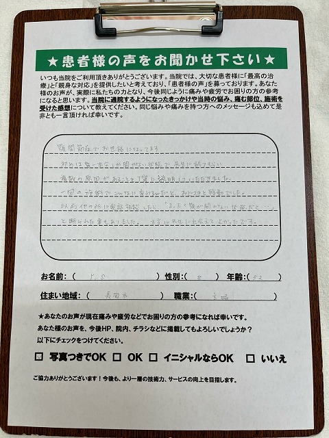 口コミやネット上の情報が細かく載っていて、今の症状に合っていたため、この接骨院に決めました。